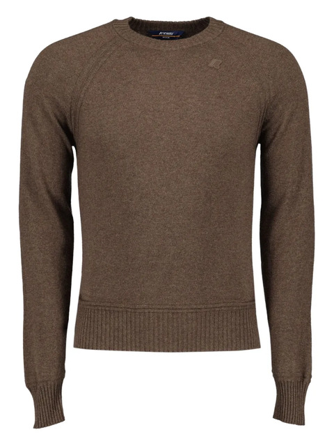 brown round neck long sleeves logo detail ribbed cuffs and hem