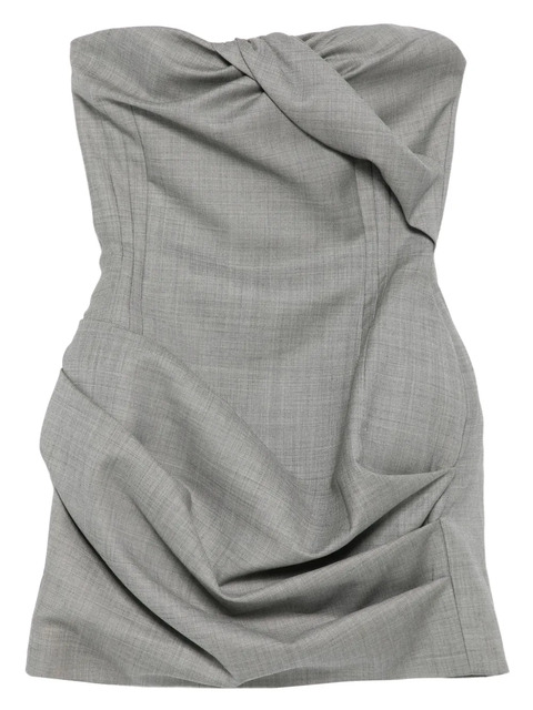 grey wool blend strapless draped detail twisted detail concealed zip fastening