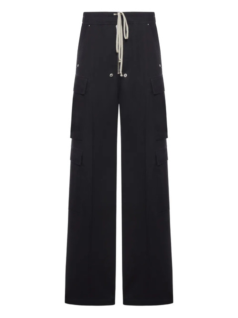 black drawstring fastening side cargo pockets rear flap pockets wide leg
