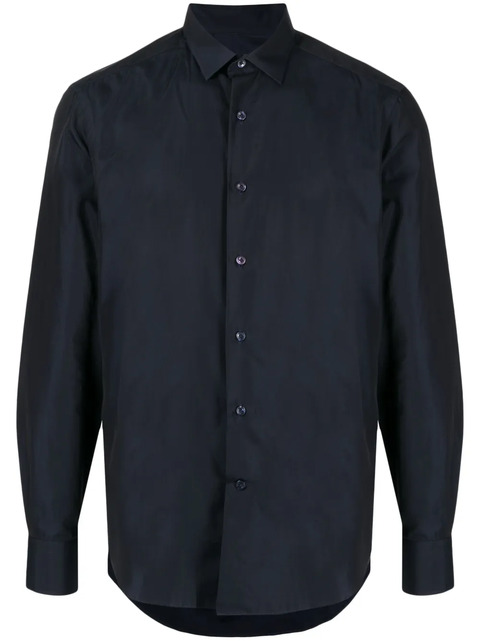 midnight blue cotton spread collar front button fastening long sleeves buttoned cuffs curved hem
