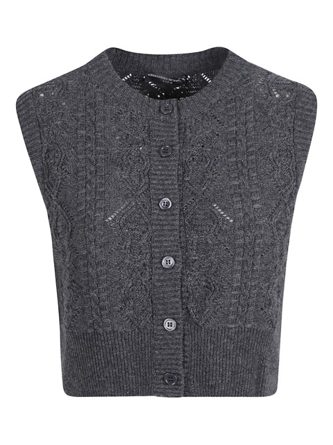 grey button fastening sleeveless knitted construction round neck