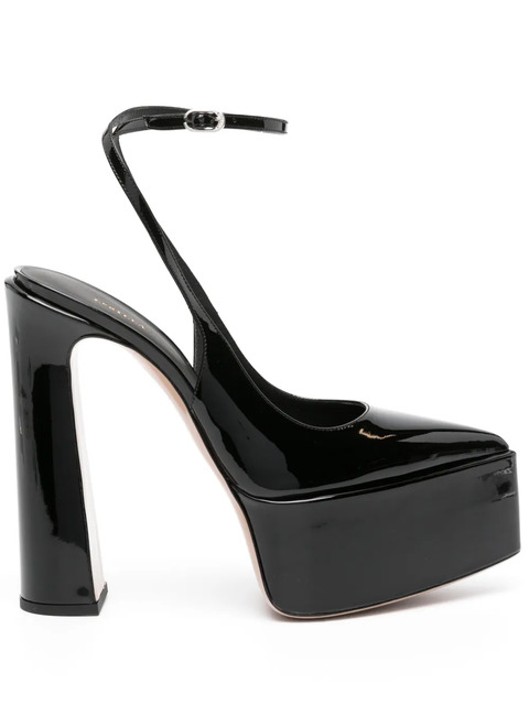 black calf leather patent finish pointed toe buckle-fastening slingback strap high heel branded leather insole platform sole