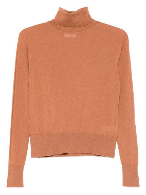 orange wool roll neck long sleeves ribbed cuffs and hem