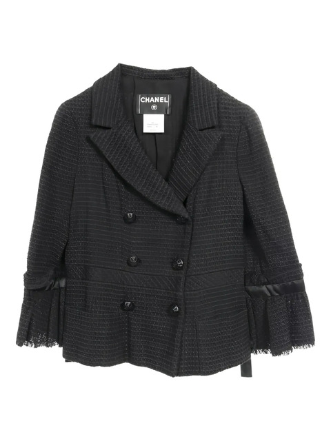 1986-1988 black tweed double-breasted button fastening bow detailing frayed trim