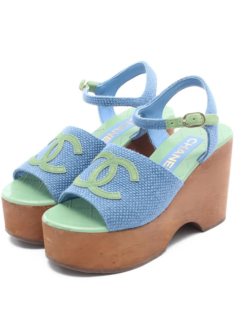 CHANEL Pre-Owned 1986-1988 100mm logo platform sandals - 32150885 (LPN344079)