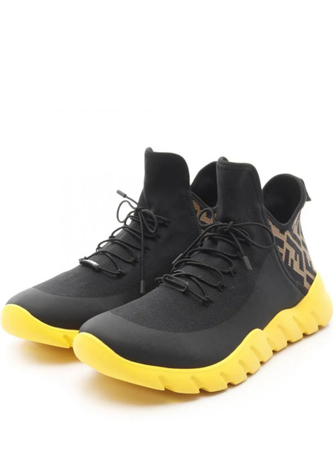 black signature Zucca pattern lace-up fastening ridged rubber sole sock-style ankles
