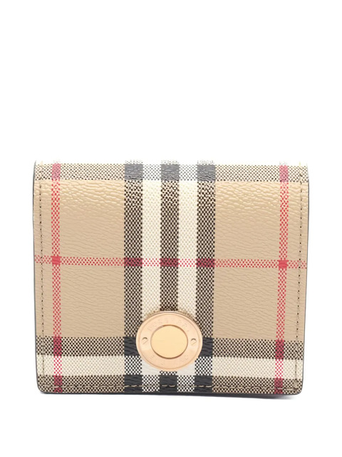 beige check pattern press-stud fastening internal slip pocket internal card slots