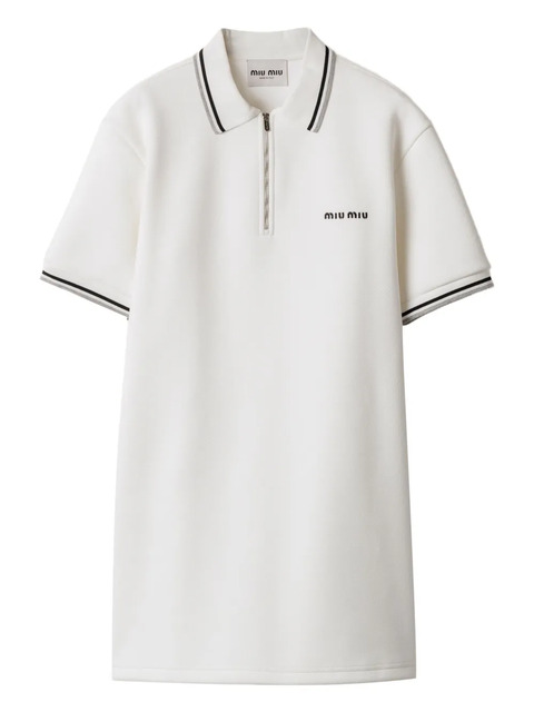 white half front zip fastening short sleeves side slits embroidered logo at the chest