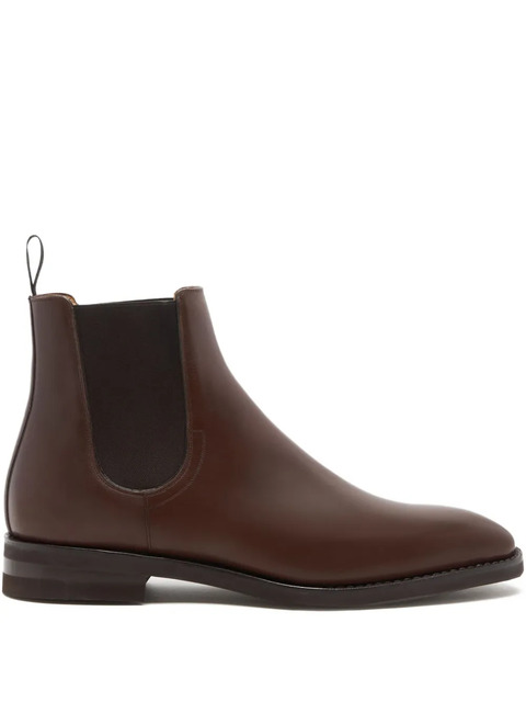 brown leather upper pull tab elasticated side panels flat sole round toe