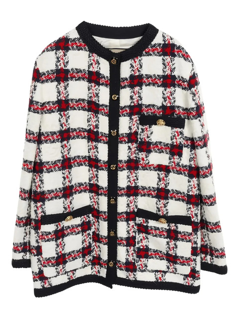 2010s white check pattern button fastening gold-tone hardware trimmed edges front pockets