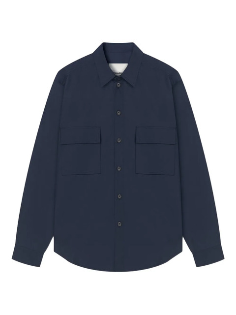 navy blue long sleeves button fastening chest flap pockets buttoned cuffs