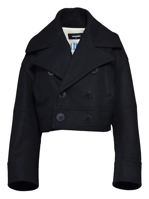 black double-breasted button fastening long sleeves cropped