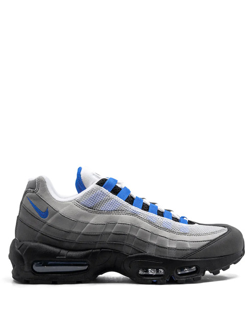 Supplied by a premier sneaker marketplace dealing with unworn, already sold out, in demand rarities. Each product is rigorously inspected by experienced experts guaranteeing authenticity. The Nike Air Max 95 "Crystal Blue" is a retro release of the popular running shoe that first hit retailers in January 2019. This OG colorway helped introduce the Air Max 95 to consumers back in 1995. The silhouette's signature wavy upper is composed of multiple shades of grey suede. A dark grey overlay on the toe, white mesh panels, a neoprene tongue, and a reflective heel complete the design. Crystal Blue adds a pop of color to the eyelets, mini Swooshes on each lateral heel, inner tongue, Air Max unit, and outsole. The Nike Air Max 95 "Crystal Blue" sits atop a black midsole.