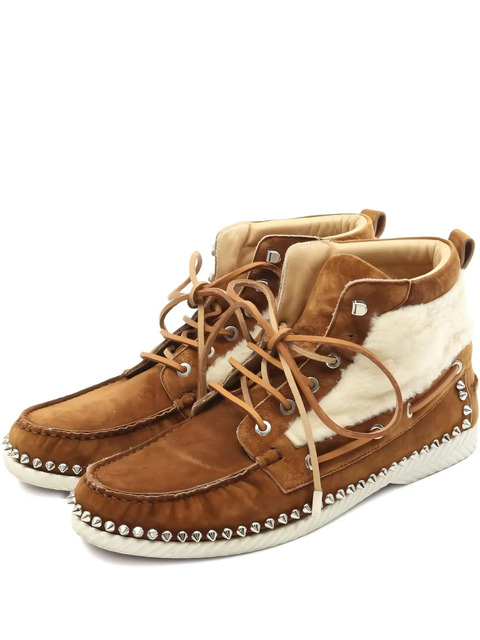 brown suede spike studs lace-up fastening