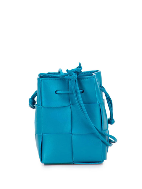 woven nappa leather body flat leather strap drawstring closure interior slip pocket blue Inclusions: dust bag. Condition: GOOD. This previously owned and used item is in good condition with minimal signs of use. This may include fading of material or plating and scratches. Due to the exclusivity of this item and its limited availability, processing and delivery might take longer than usual. Please refer to the photos on this product page for a detailed view of the item, including any damages declared.