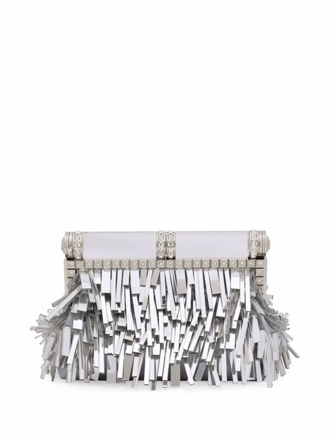 silver-tone nappa leather fringe detailing crystal embellishment metallic effect silver-tone hardware top clasp fastening detachable chain-link shoulder strap main compartment internal slip pocket internal logo plaque satin lining This piece comes complete with a protective dust bag.
