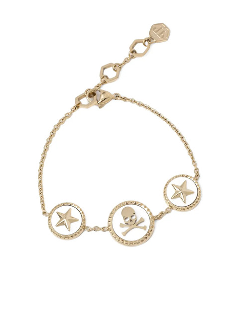 gold skull motif star motif hexagonal chain detail gold-tone finish lobster claw fastening