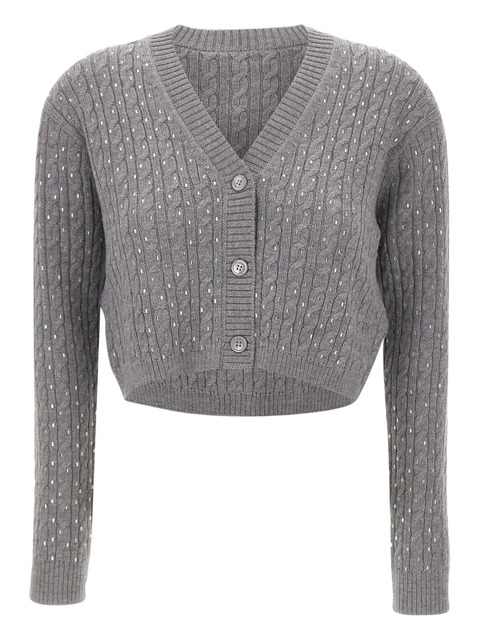 grey beaded embellishment cable knit V-neck long sleeves