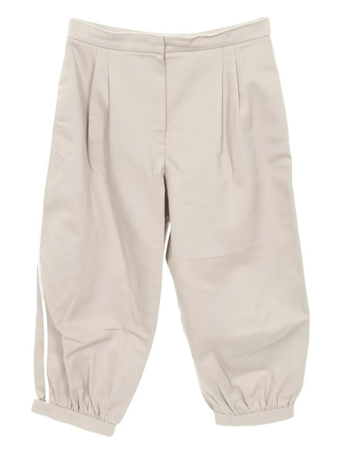 2010 beige side stripe front button fastening back jetted pockets gathered cuffs cotton