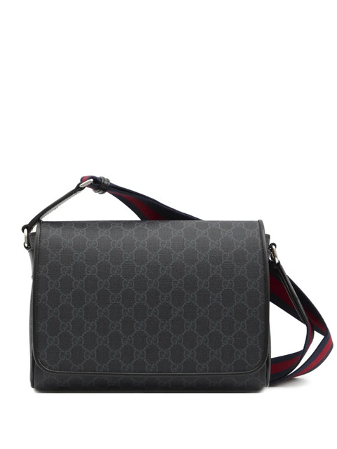 black GG monogram pattern adjustable strap flap closure silver-tone hardware rectangular shape