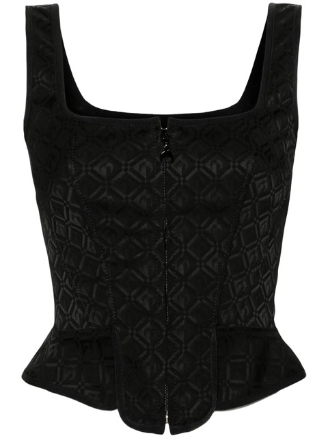 black Moon Diamant jacquard corset style panelled design jersey panels square neck front zip fastening branded zip puller sleeveless asymmetric hem logo-jacquard lining