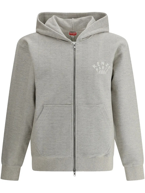 grey logo print to the rear front zip fastening classic hood long sleeves