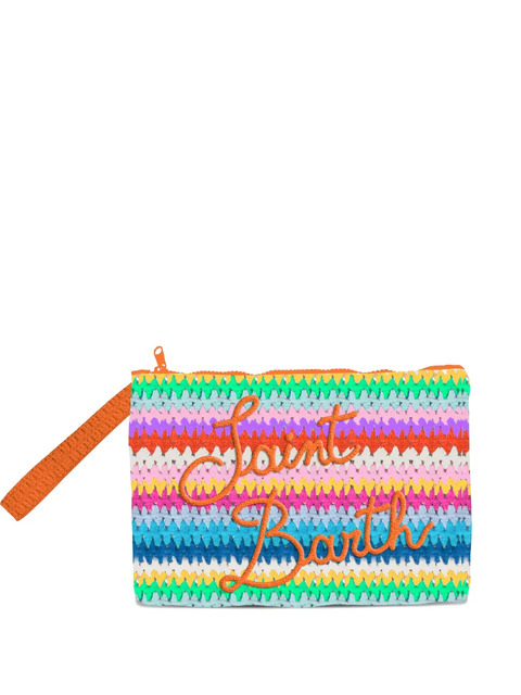 multicolored crochet texture zip fastening saint barth logo embroidery orange handle rectangular shape