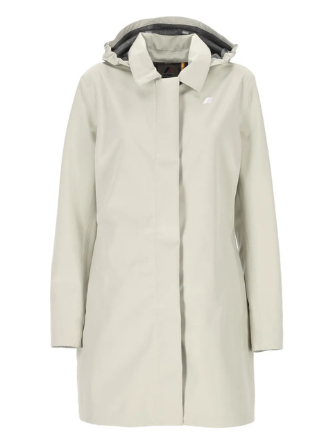 light beige concealed front zip fastening drawstring hood two side zip-fastening pockets water-resistant