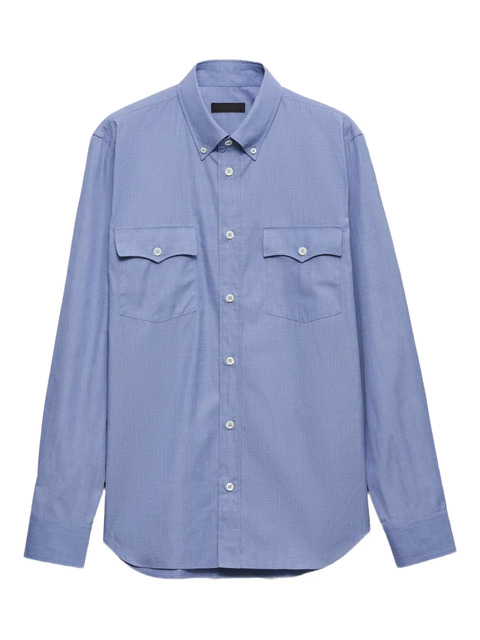 cobalt blue front button fastening two button-fastening chest pockets button-down collar triangle logo