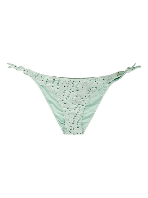 light green eyelet pattern adjustable side ties close-fitting Be mindful to try on swimwear over your own garments.