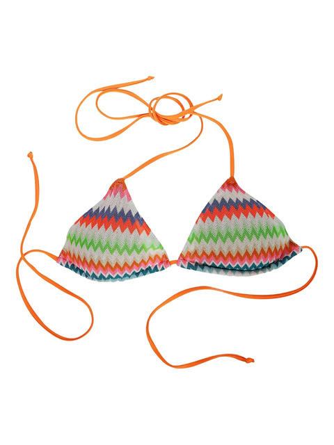 orange zig-zag pattern lace-up fastening triangle shape tie straps Be mindful to try on swimwear over your own garments.