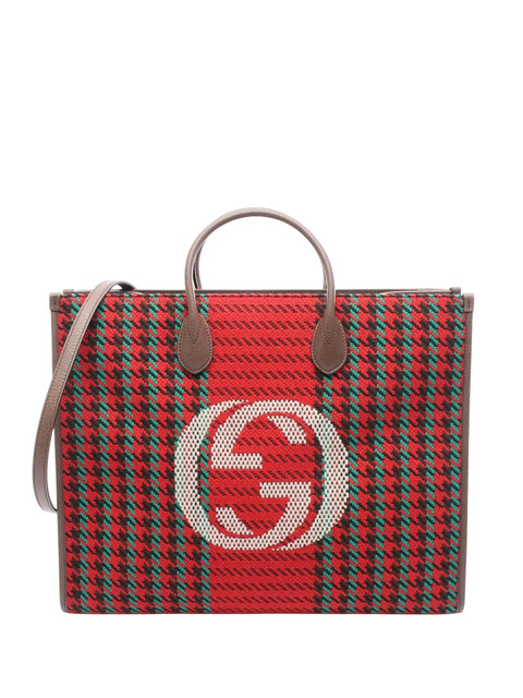 Gucci Pre-Owned 2016-2025 Interlocking G Tweed Houndstooth Stripe satchel - 32205558 (LPN346395)