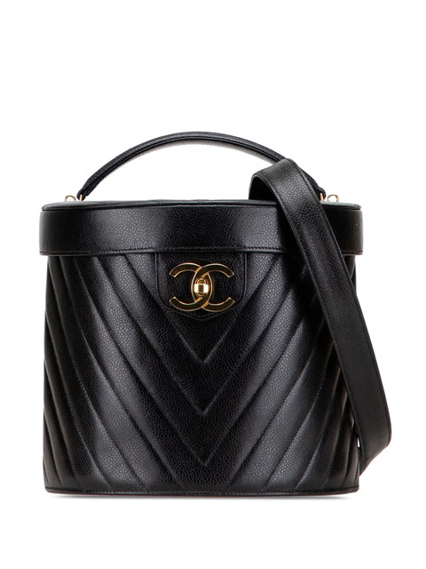 CHANEL Pre-Owned 1994-1996 CC Chevron Caviar Turnlock Vanity Bag satchel - 32199690 (LPN346434)