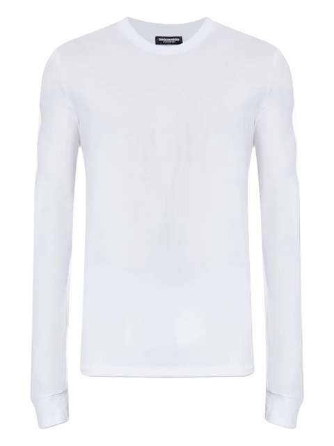 white crew neck long sleeves label patch