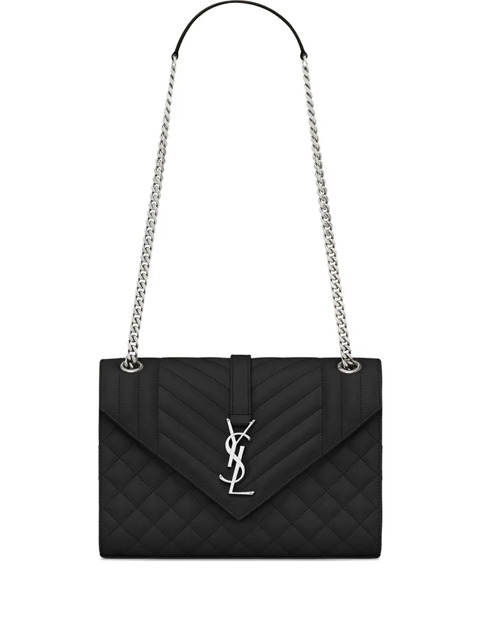 black quilted leather envelope shape silver-tone chain strap YSL logo flap closure