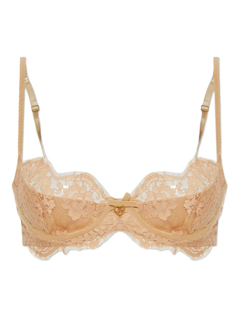 beige floral lace heart detail adjustable straps hook and eye fastening bow detail