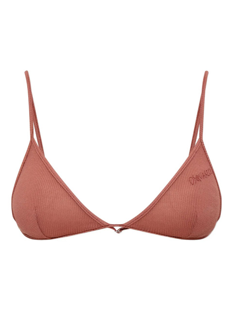 rose pink ribbed texture embroidered logo triangle cup adjustable straps