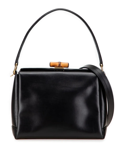 leather body flat leather handle detachable flat leather strap top bamboo twist lock closure interior zip and slip pockets black Serial Number: 000 33 0175 Inclusions: shoulder strap. Condition: GOOD. This previously owned and used item is in good condition with minimal signs of use. This may include fading of material or plating and scratches. Declared Damages: Interior Lining Feature(s) Minor Splitting. Please refer to the photos on this product page for a detailed view of the item, including any damages declared.