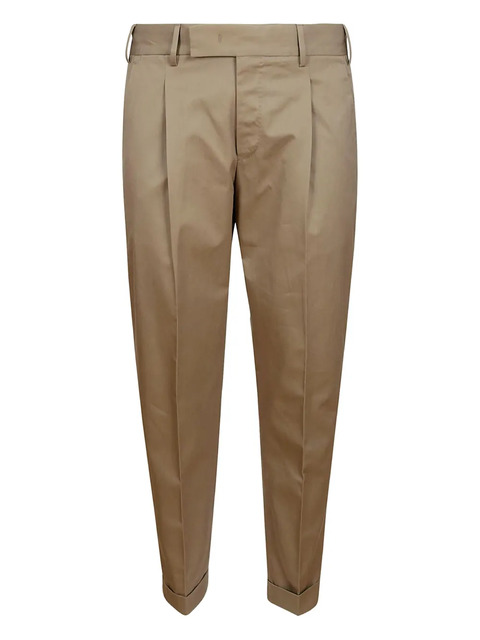 beige cotton front concealed fastening pleated detailing side slit pockets rear welt pockets belt loops