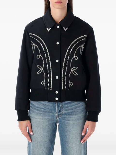black embroidery polo collar button fastening ribbed hem long sleeves