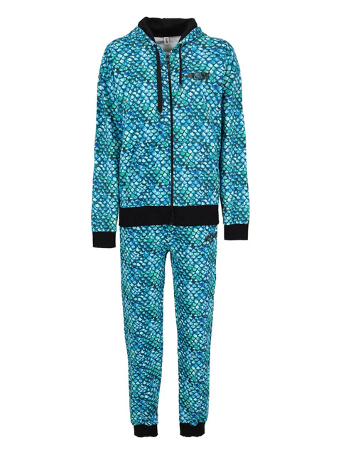 blue fish scale print classic hood front zip fastening black details elastic waistband