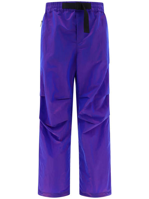 electric purple high-shine finish signature Equestrian Knight motif elasticated waistband belted waist two side zip-fastening pockets rear zip-fastening pocket straight leg