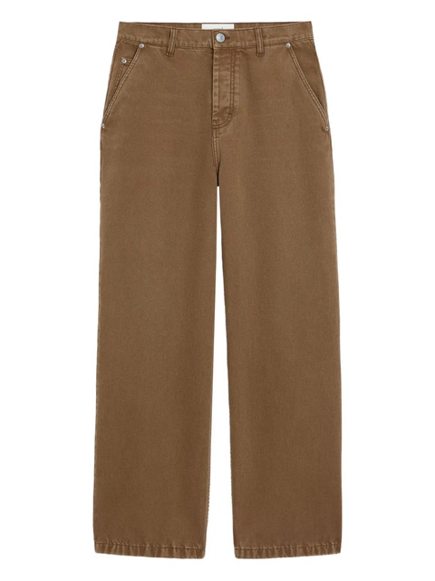 brown five pockets concealed fly and button fastening belt loops rear logo patch