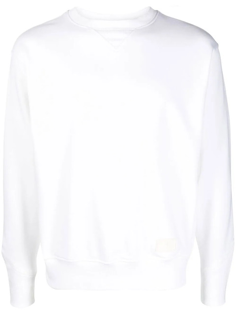 white cotton blend logo patch to the front crew neck long sleeves elasticated cuffs elasticated hem