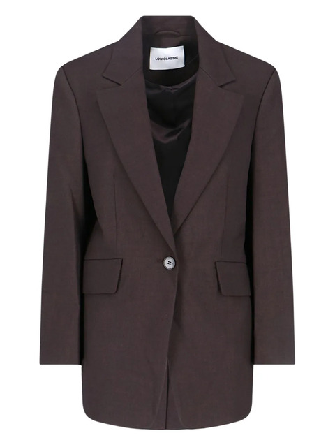 brown notched lapels front button fastening long sleeves buttoned cuffs two front flap pockets