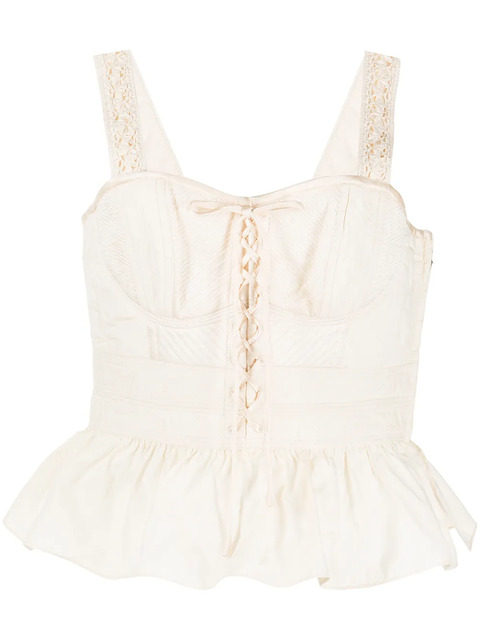 ivory white cotton front lace-up fastening bustier-style neckline sleeveless peplum hem