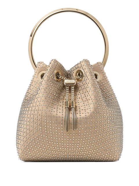 light gold-tone crystal embellished ring top handle chain shoulder strap drawstring fastening tassel detail