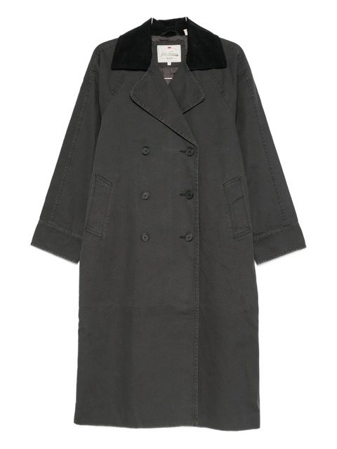 grey corduroy collar double-breasted button fastening long sleeves buttoned cuffs
