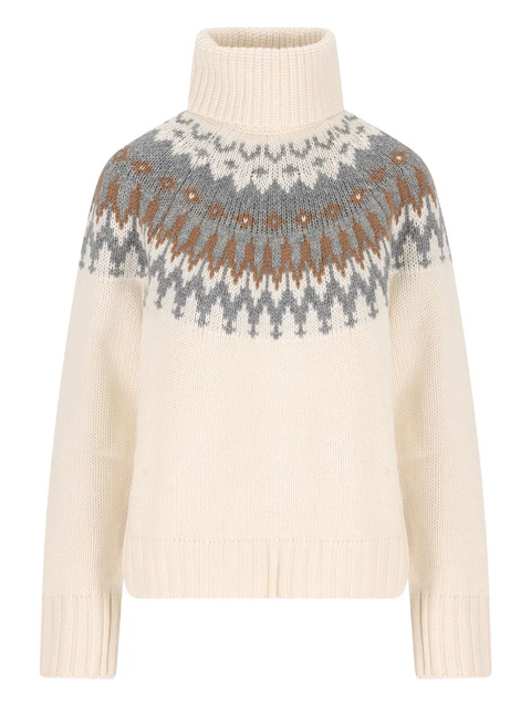 light beige cashmere patterned roll neck long sleeves knitted construction ribbed hem
