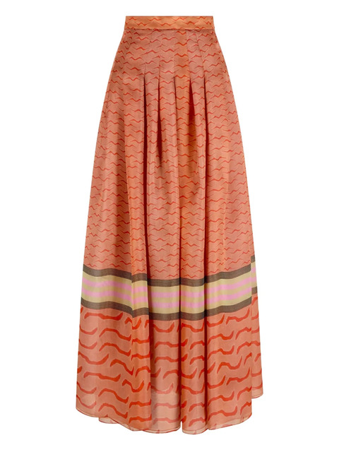orange striped pattern pleated design panelled design wave pattern banded hem